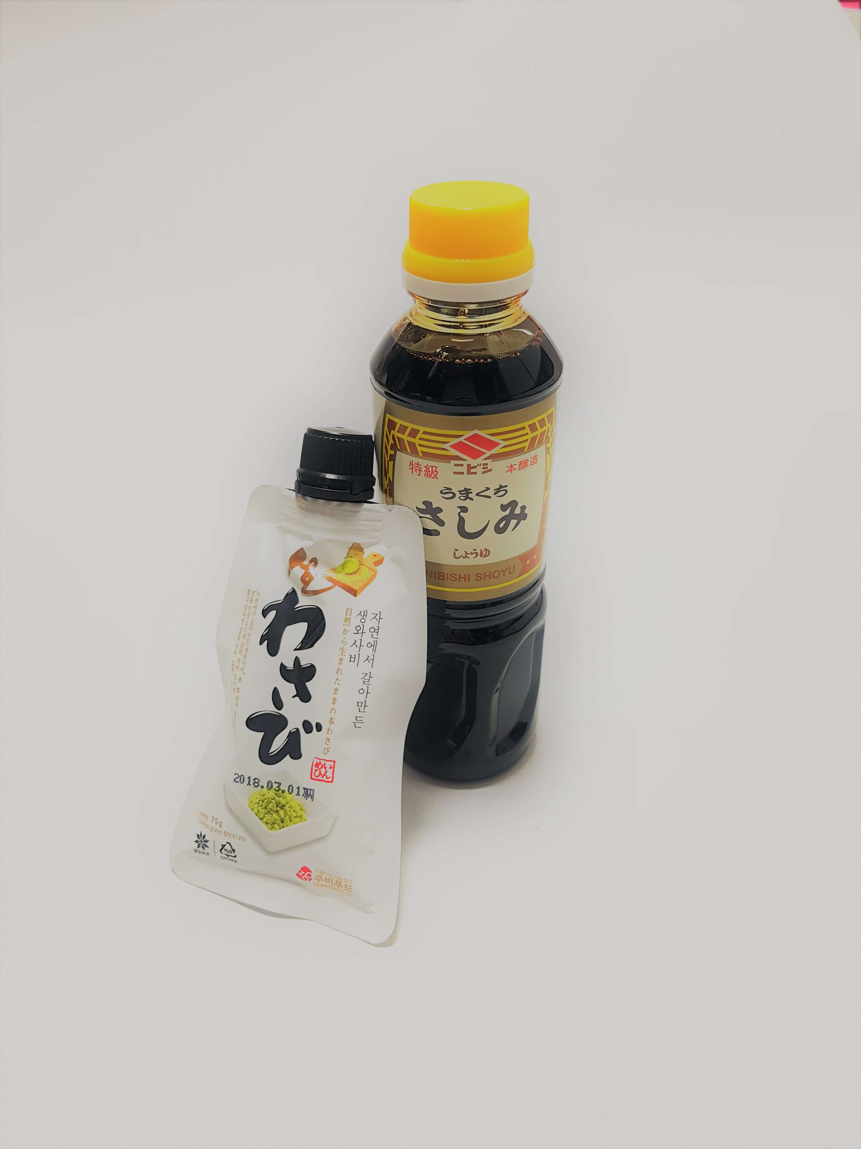 - 해동용 소금 , 해동지 5매 , 락교&초생강, 사시미간장 4g X 4 , 생와사비 3g x 2