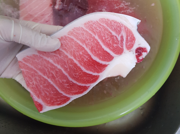 참다랑어 오도로1번의 해동 전 모습입니다.